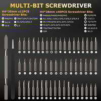 This electric screwdriver kit includes 57 precision tools and accessories, such as various sizes of screwdriver heads, tweezers, and a metal crowbar, enabling users to tackle a wide range of repair tasks. This screwdriver set is particularly useful for repairing electronic devices, watches, and cameras, allowing users to easily swap out heads as needed